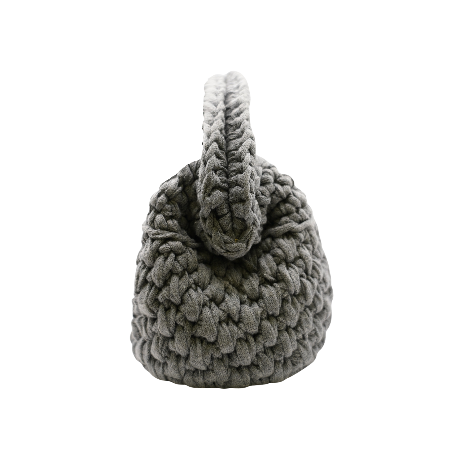 Interamente realizzata a mano con una lavorazione fitta e voluminosa, la Borsa Perla Grigia unisce comfort e carattere.